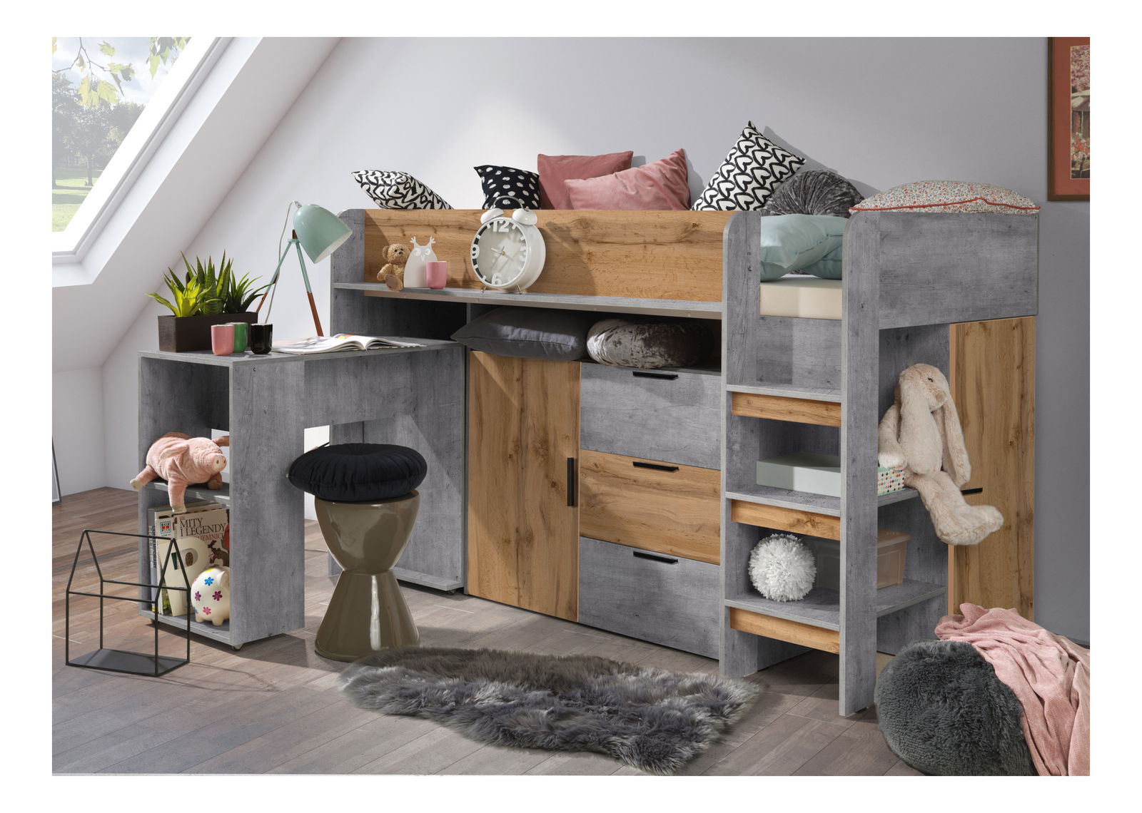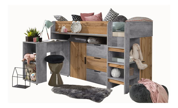 Dětská kombinovaná postel 90 cm Kesa 1 (beton + dub wotan)