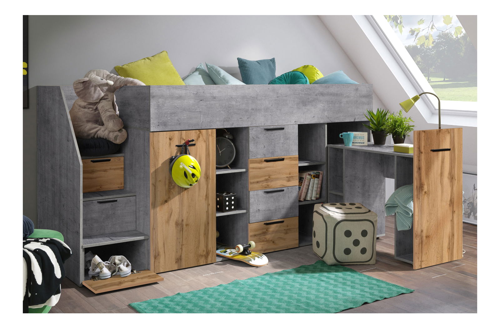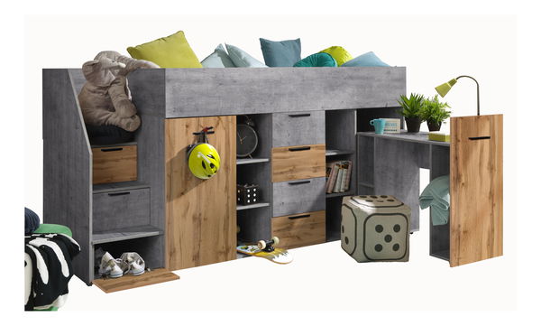 Dětská kombinovaná postel 90 cm Kesa 3 (beton + dub wotan) (L)