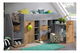 šest otevřených polic na přední části postele