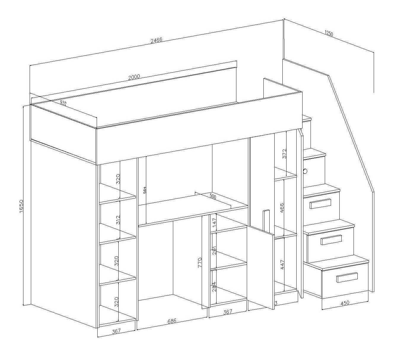 Obsahuje dvě vnitřní police a jednu otevřenou která se nachází nad ní