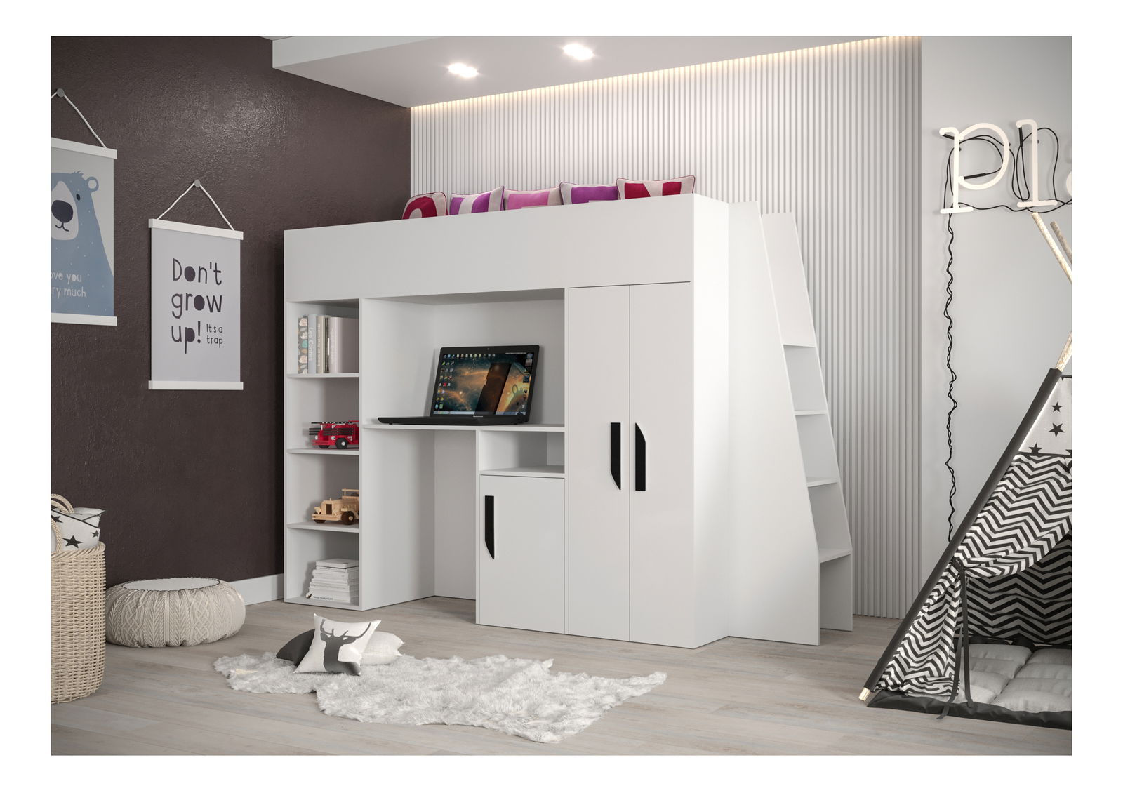 Dětská kombinovaná postel 90 cm Puro 15 (matná bílá + bílý lesk + černé úchytky)