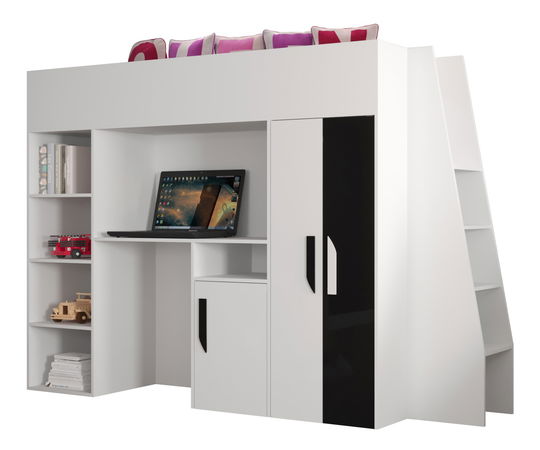 Dětská kombinovaná postel 90 cm Puro 15 (matná bílá + bílý lesk + černý lesk)