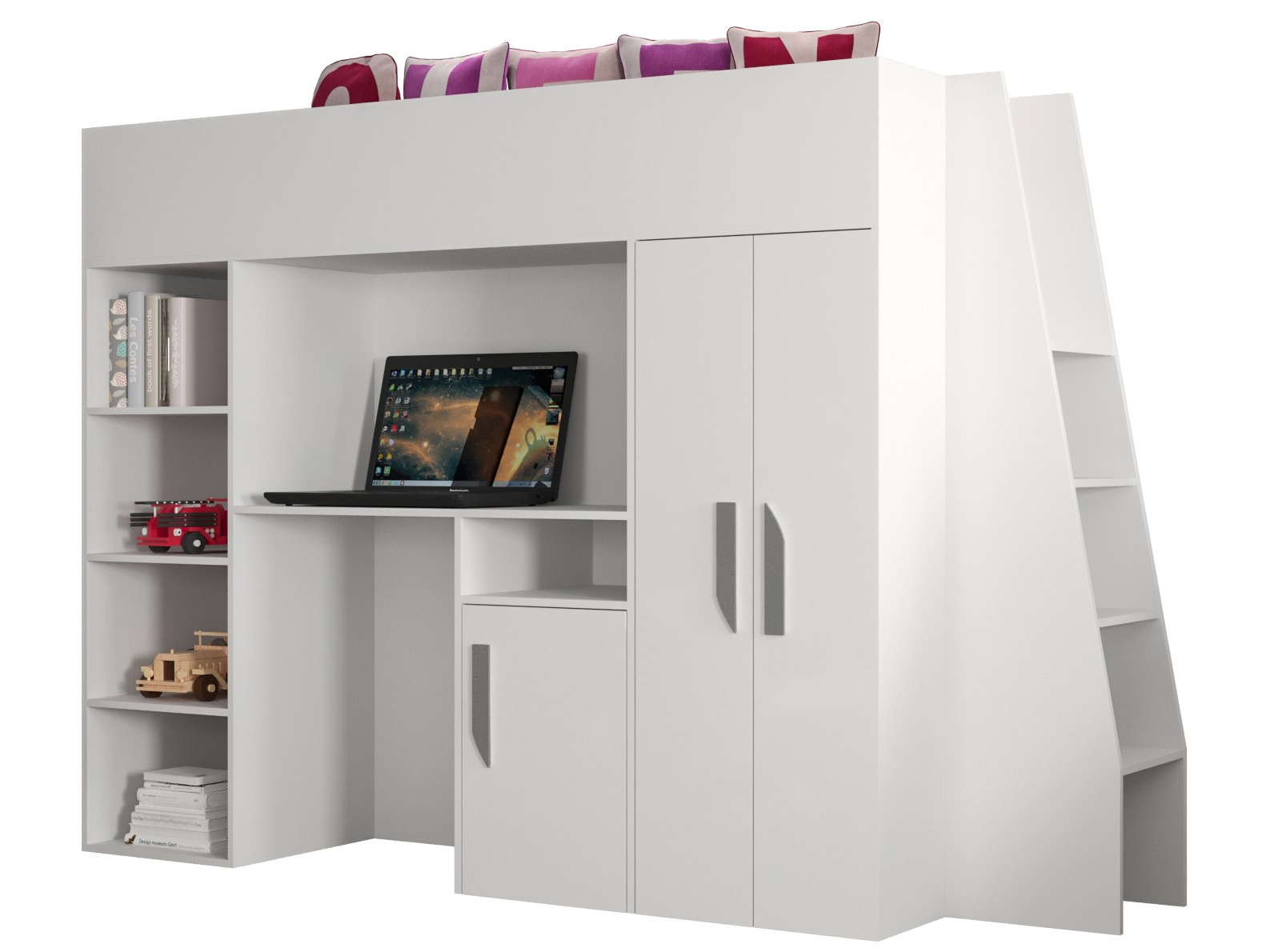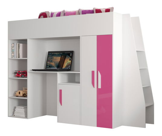 Dětská kombinovaná postel 90 cm Puro 15 (matná bílá + bílý lesk + růžový lesk)