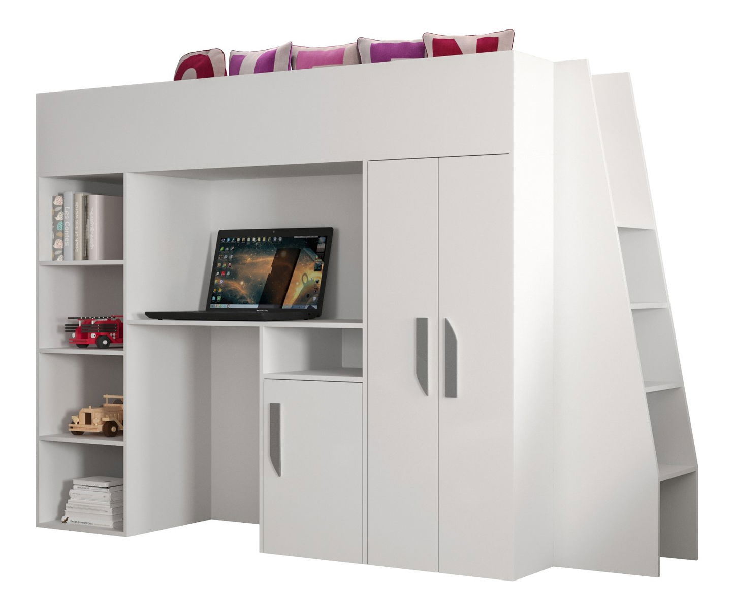 Dětská kombinovaná postel 90 cm Puro 15 (matná bílá + bílý lesk + šedé úchytky)