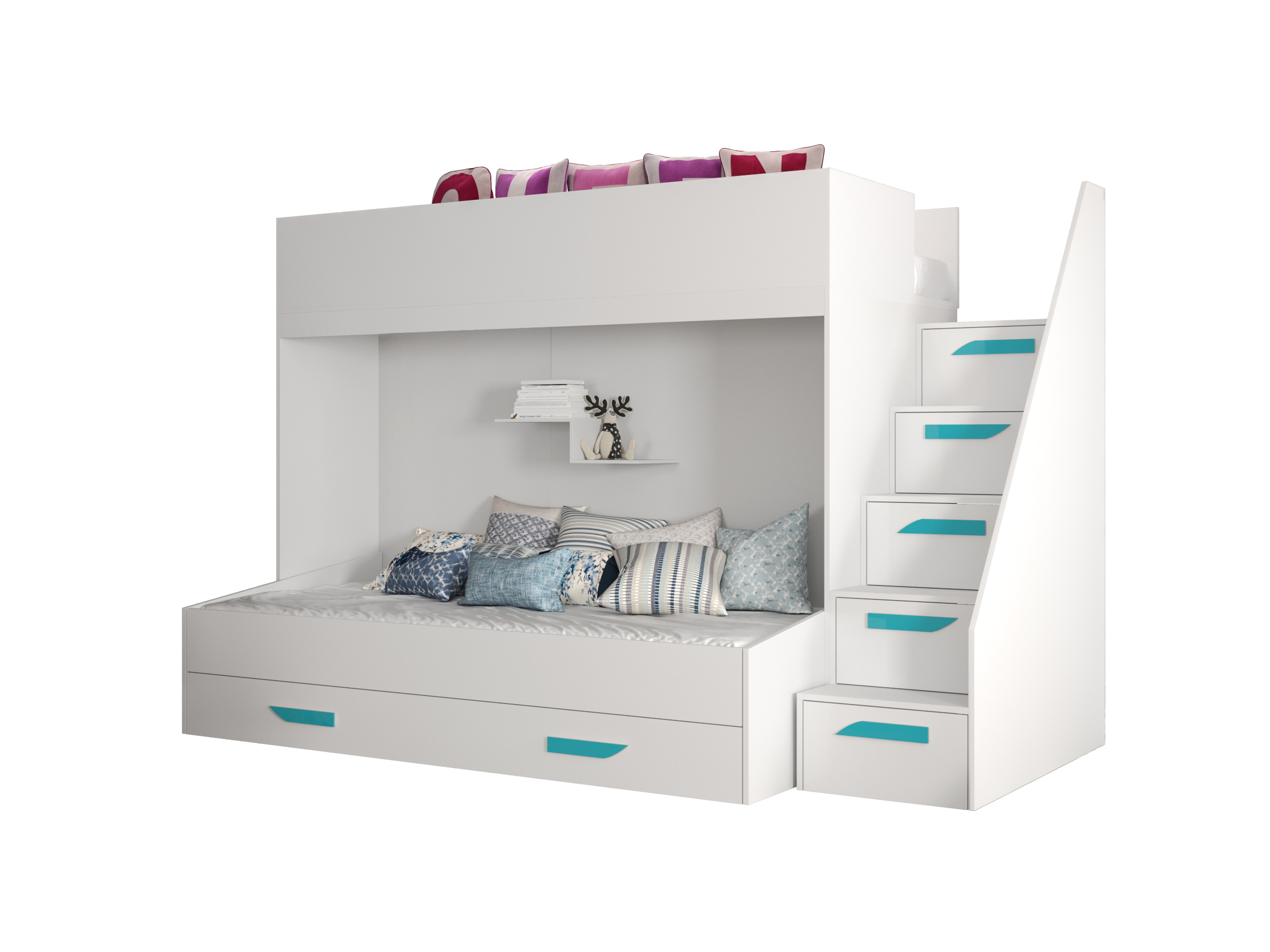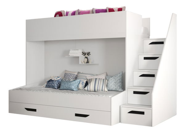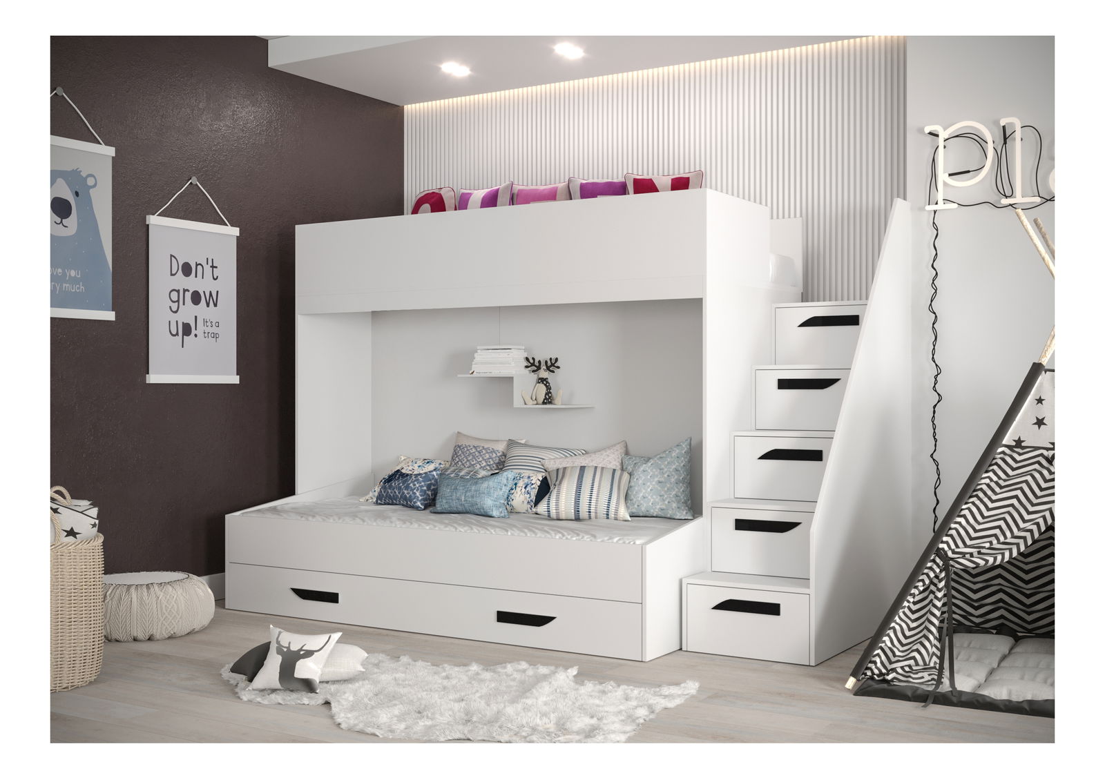 Dětská kombinovaná postel 90 cm Puro 16 (matná bílá + bílý lesk + černé úchytky)