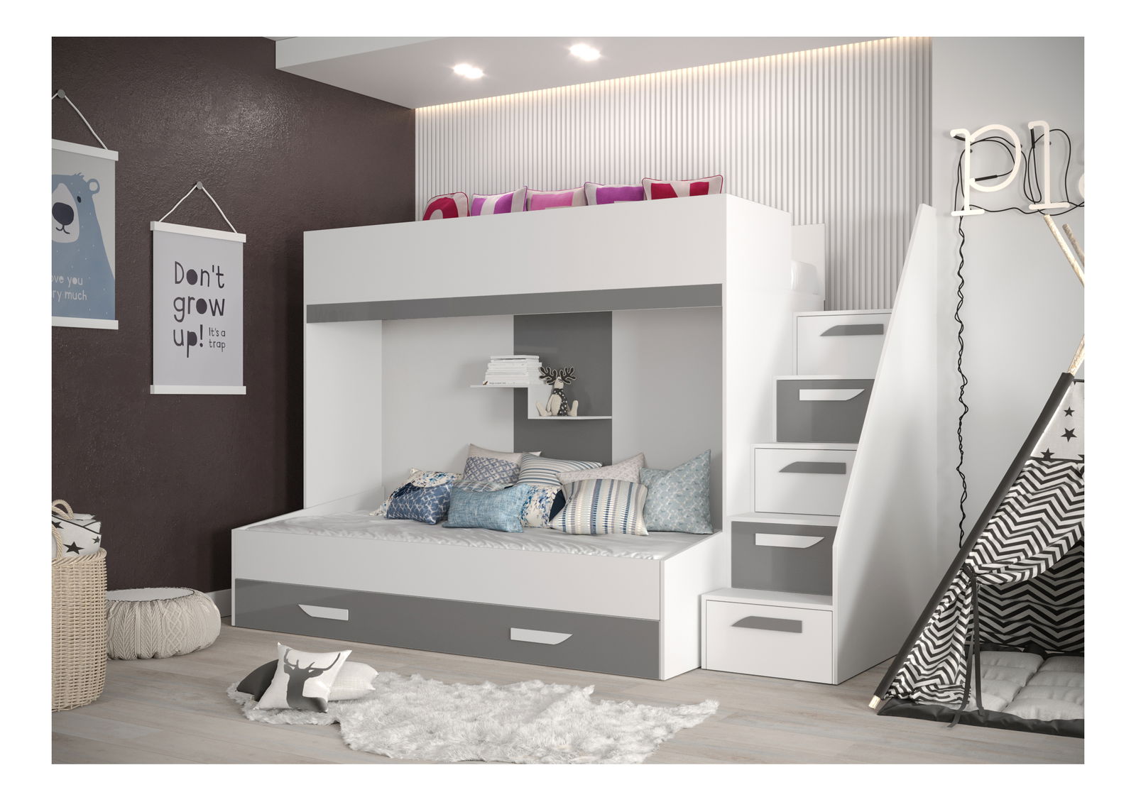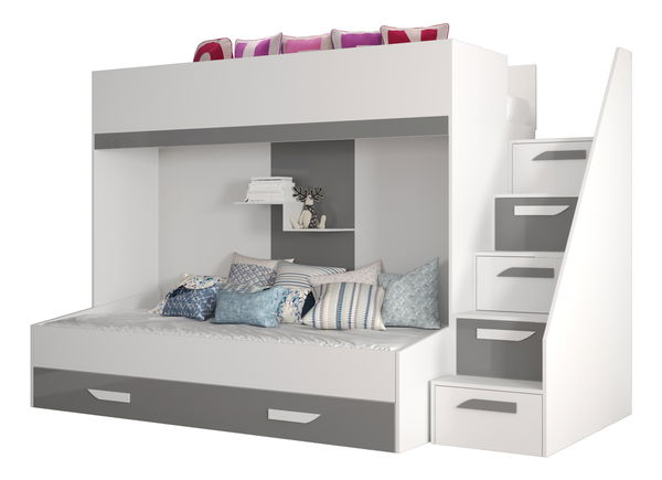 Dětská kombinovaná postel 90 cm Puro 16 (matná bílá + bílý lesk + šedý lesk)