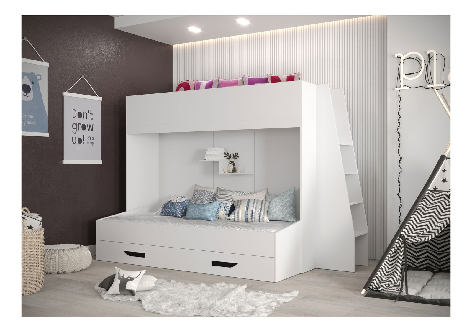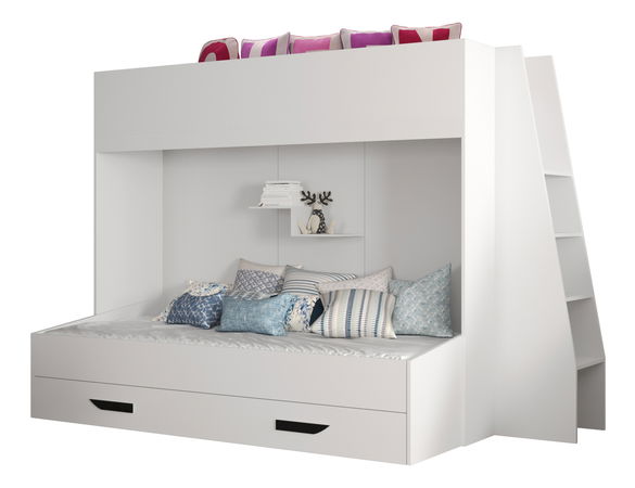 Dětská kombinovaná postel 90 cm Puro 17 (matná bílá + bílý lesk + černé úchytky)
