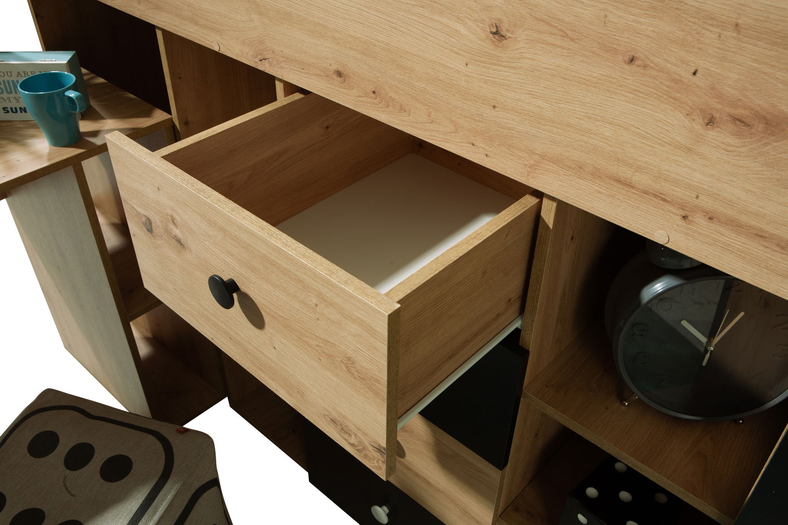 Dětská kombinovaná postel 90 cm Sami 3 (dub artisan + matná bílá + černá madla) (L)