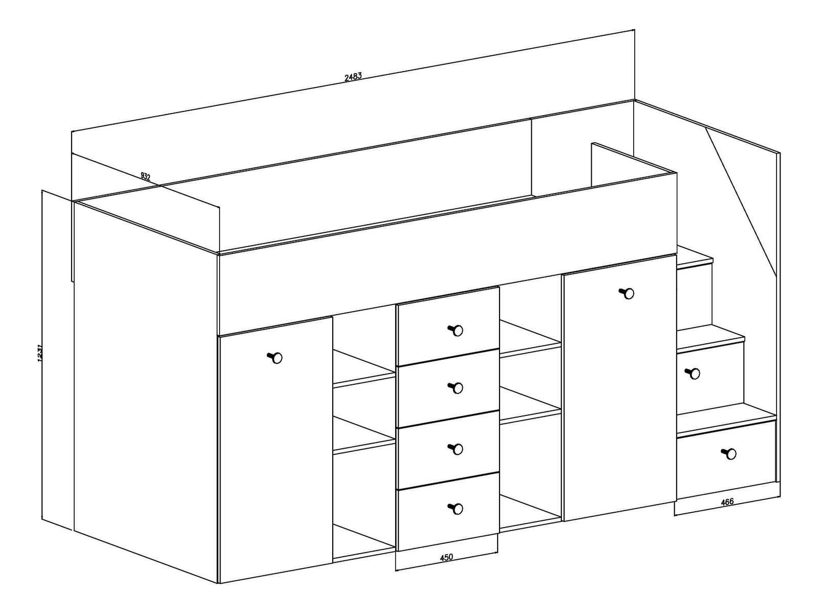 obsahuje 2 police a jednu věšákovou tyč na zavěšení oblečení