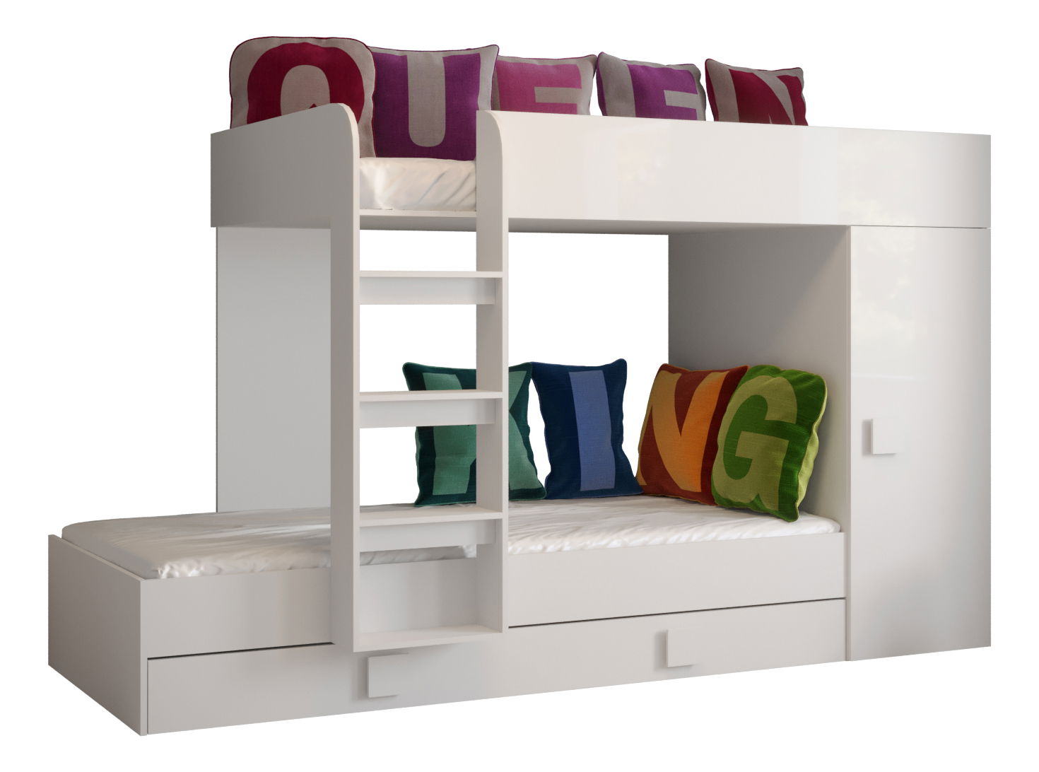 Dětská kombinovaná postel 90 cm Toreno 2 (bílá + bílý lesk + bílá lesklá madla)