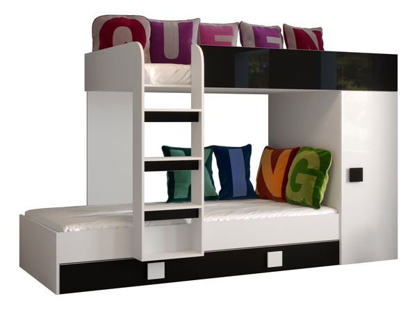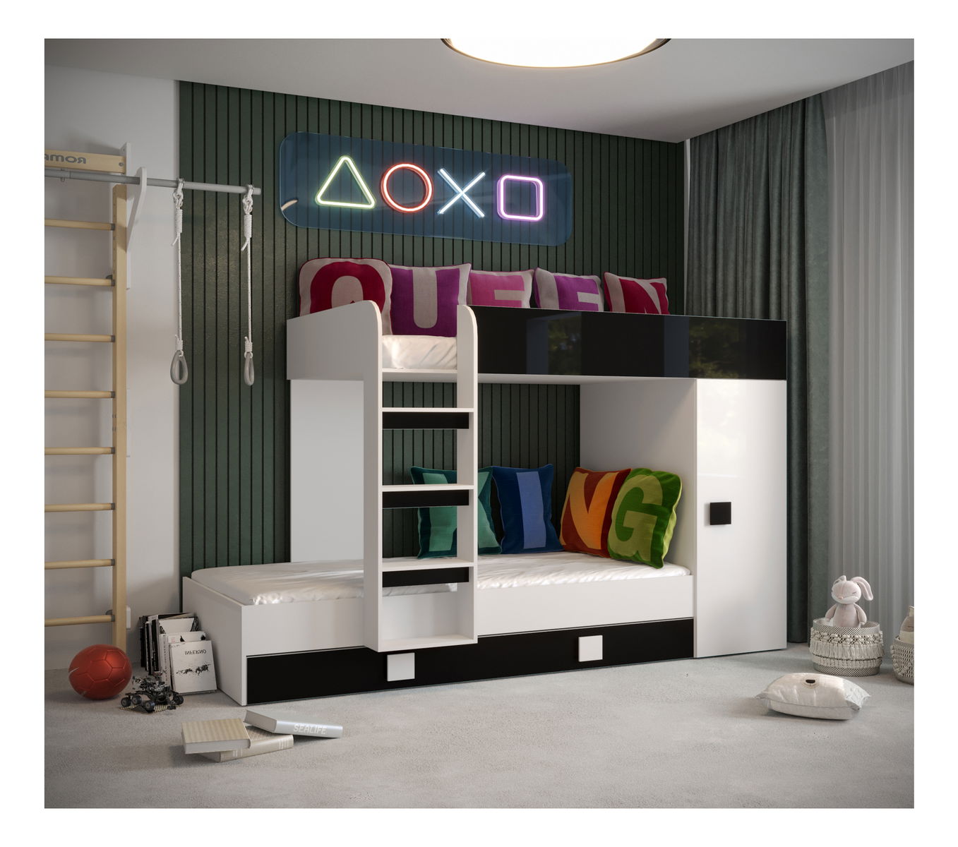 Dětská kombinovaná postel 90 cm Toreno 2 (bílá + bílý lesk + černý lesk)