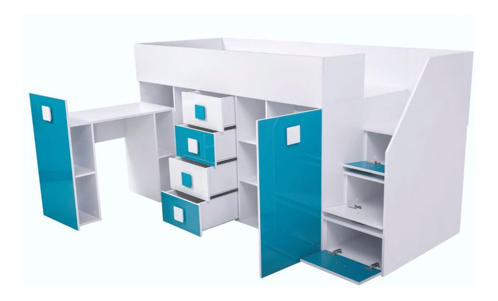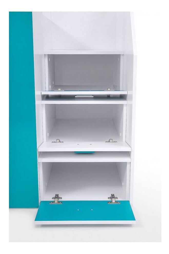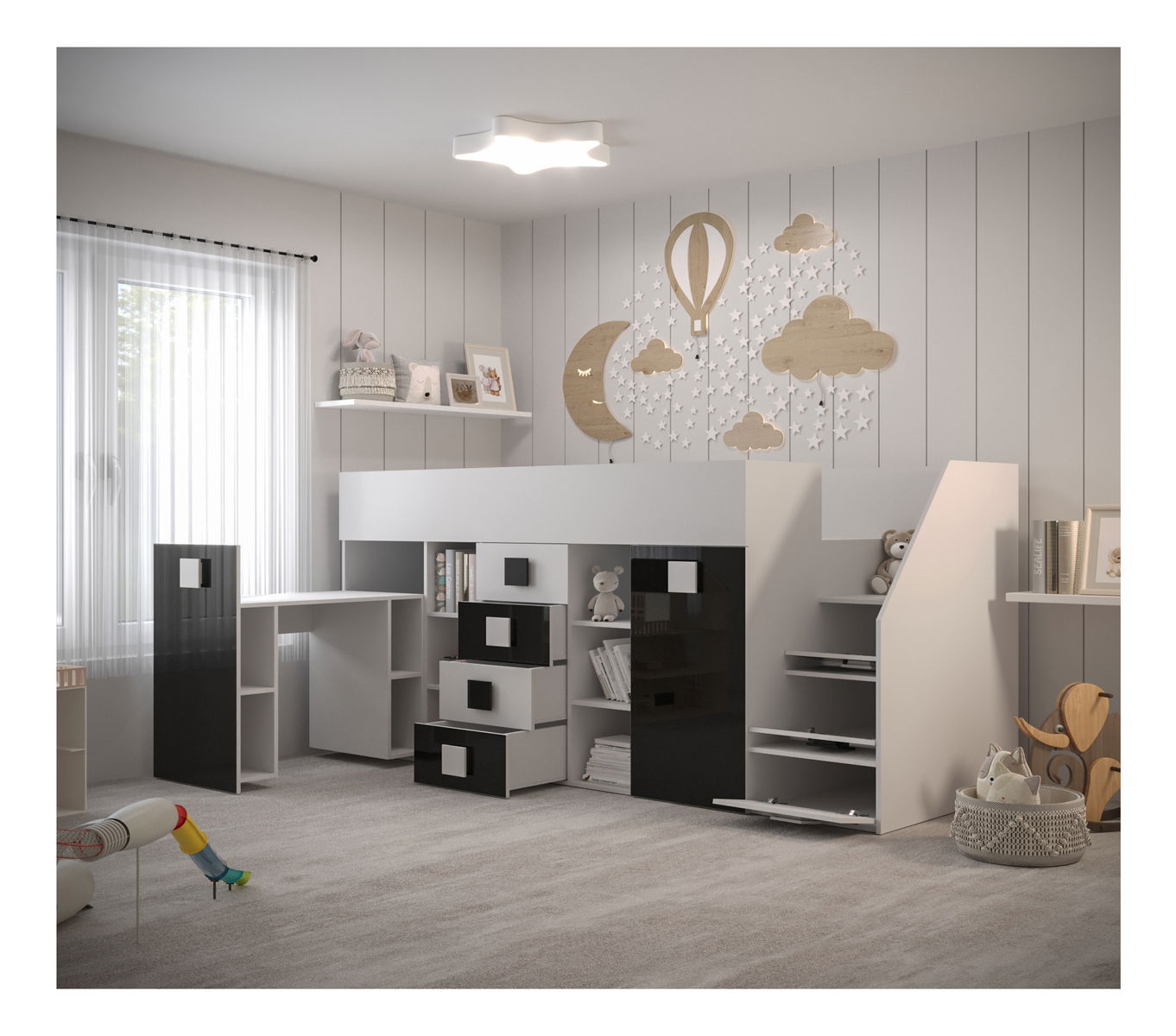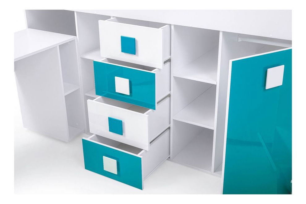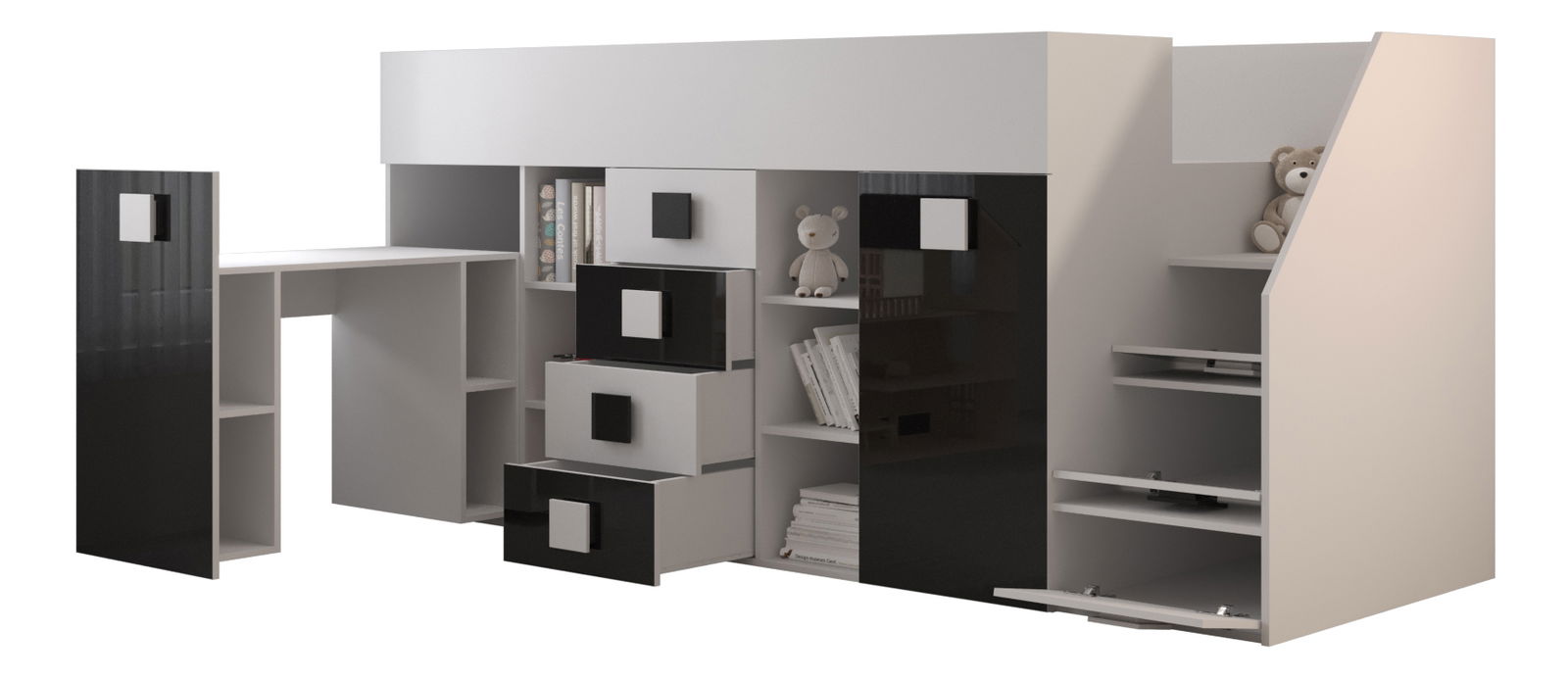 Dětská kombinovaná postel 90 cm Toreno 3 (bílá + bílý lesk + bílá lesklá madla) (P)