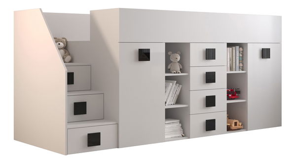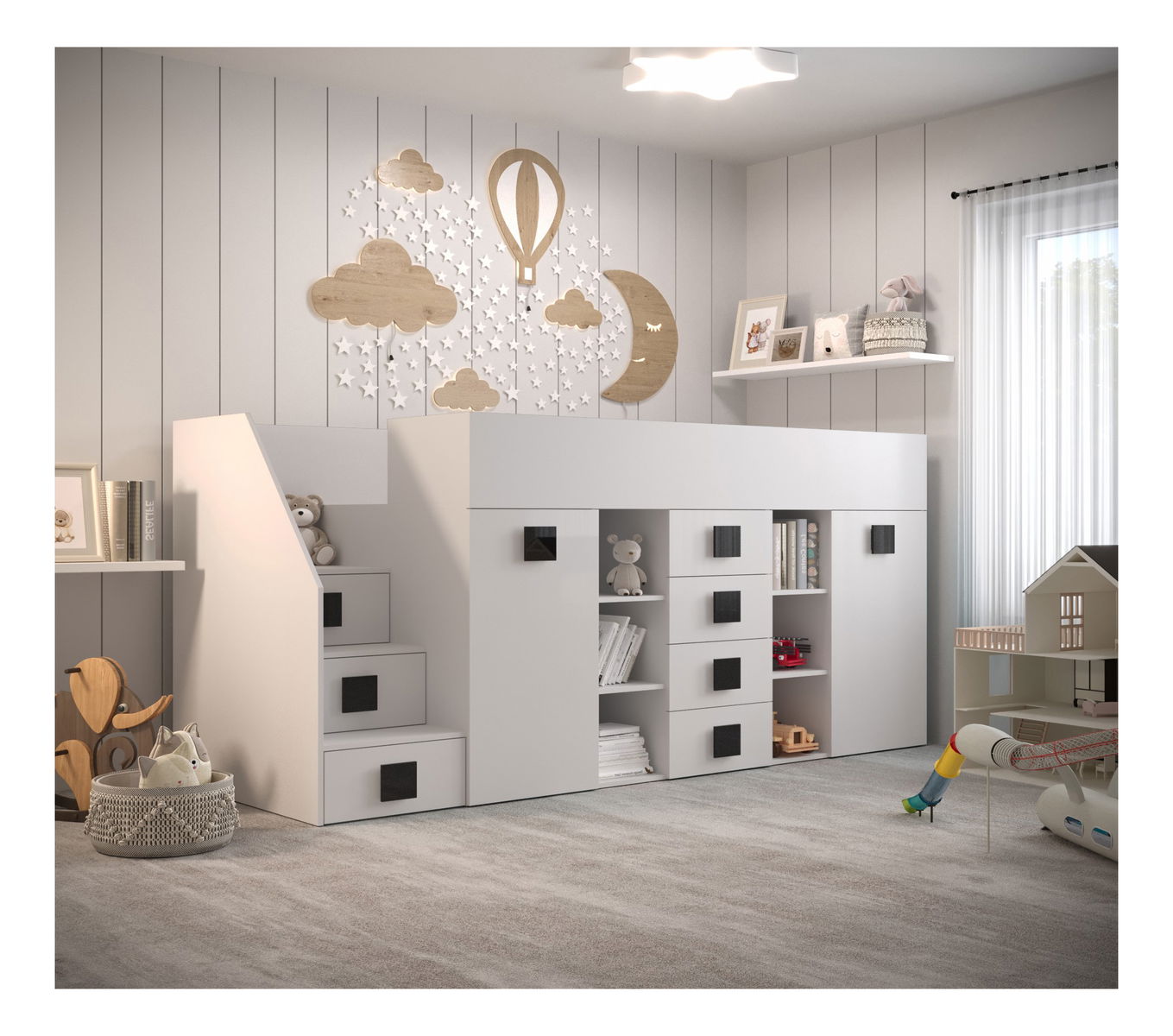 Dětská kombinovaná postel 90 cm Toreno 3 (bílá + bílý lesk + černá lesklá madla) (L)