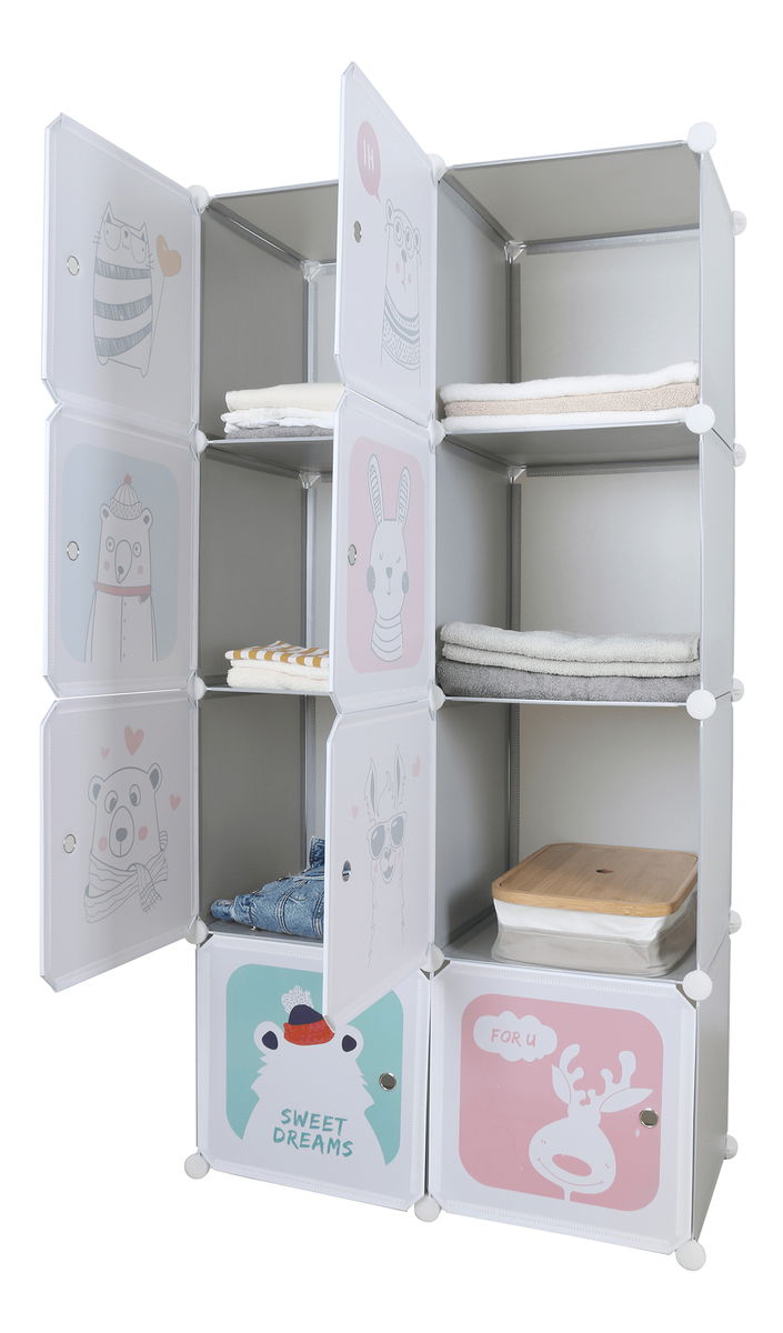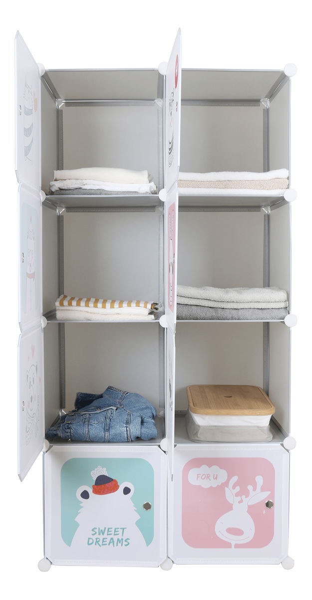 Modulární dětská skříňka Rover okouzlí nejednu ratolest. Sestává z 8 modulů. Každý modul má dvířka s pohádkovým motivem, který přinese fantazii do dětského pokoje. Skříňka je vyrobena z plastu přičemž výztuhu tvoří kov, díky tomu je jednoduchá na údržbu.