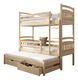 Patrové postele představují racionální využití místnosti a znásobení funkce dětského pokoje. Jsou oblíbené zejména v menších bytech, kde je třeba využít prostor co nejlépe. Patrová postel Anie nabízí možnost k přespání až třem dětem. Všechna tři lůžka jsou plnohodnotná a po umístění vhodné matrace zaručují dětem pohodlný spánek. Horní i střední lůžko mají praktickou bariérku, která zabraňuje spadnutí dítěte. Spodní lůžko je umístěno na kolečkách, pomocí kterých jej jednoduše vysunete nebo zasunete. Pod ním se nacházejí ještě dvě zásuvky, do kterých si děti mohou uložit své hračky. Přístup na horní lůžko je zajištěn pomocí žebříku.