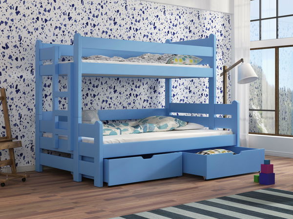 Patrová postel zatraktivní dětský pokoj a ušetří potřebné místo na hraní. Postel Bivi je charakteristická tím, že horní lůžko je stavěno na šířku 90 cm matrace a spodní 120 cm. Na horní lůžko se dítě dostane pomocí žebříku, který je umístěn na straně postele. Pod spodním lůžkem jsou dvě zásuvky, do kterých si děti mohou umístit své hračky, nebo povlečení.