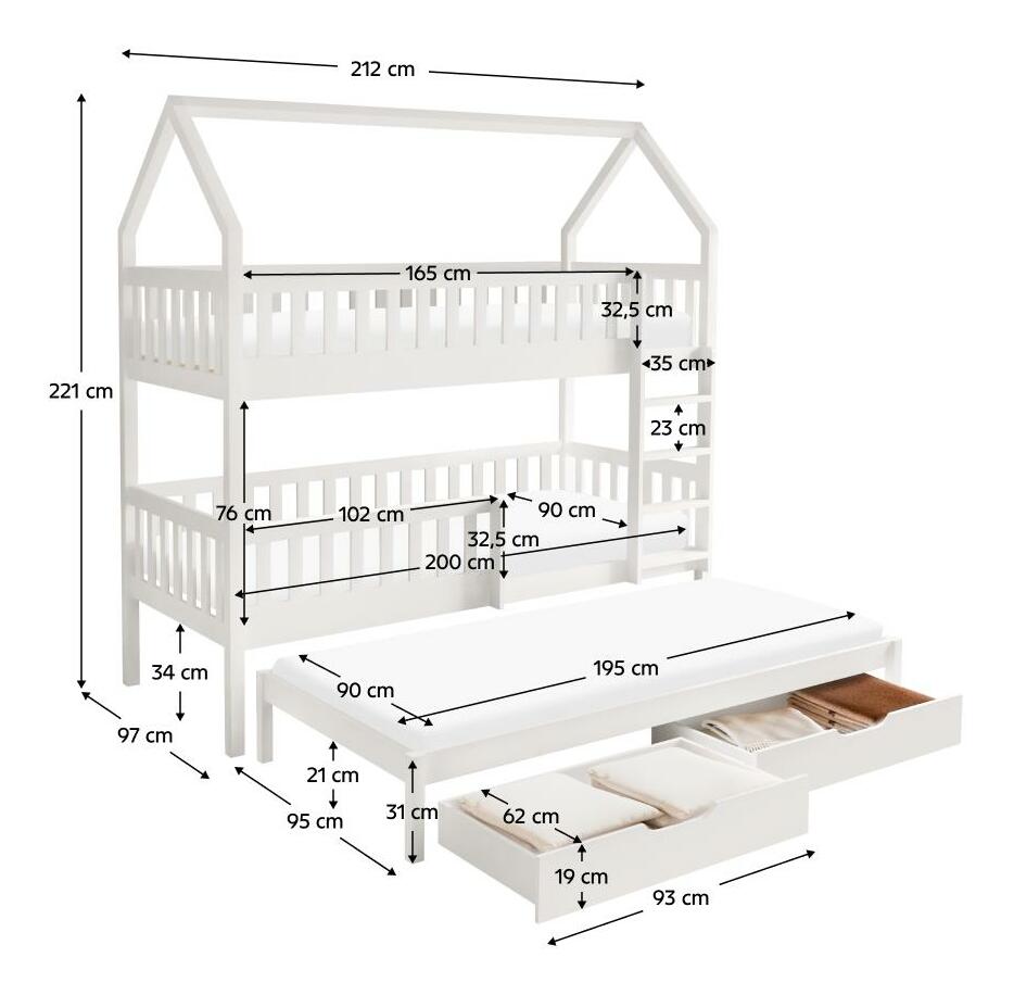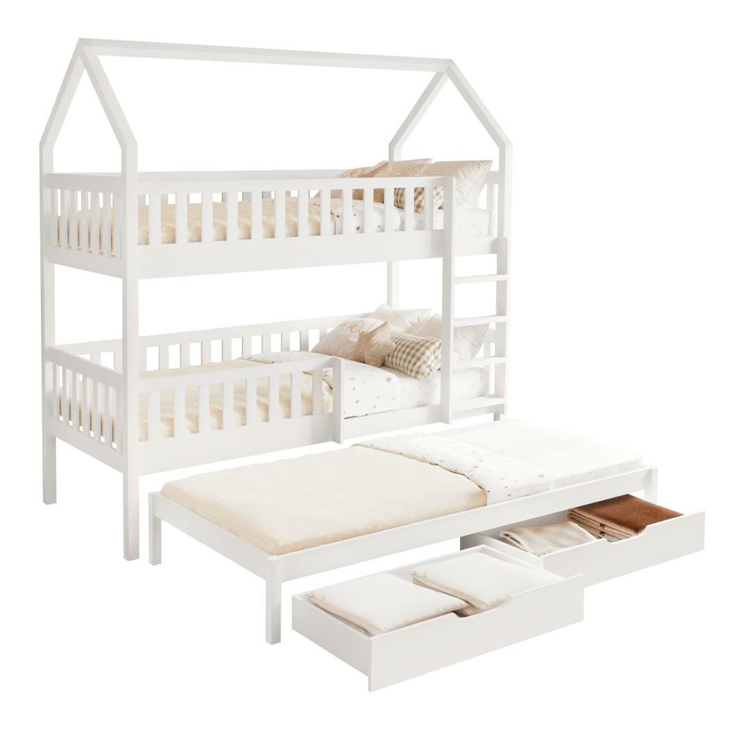 Dětská patrová postel s přistýlkou 90 cm Virtuoso (bílá) (s roštem) (s úl. prostorem)