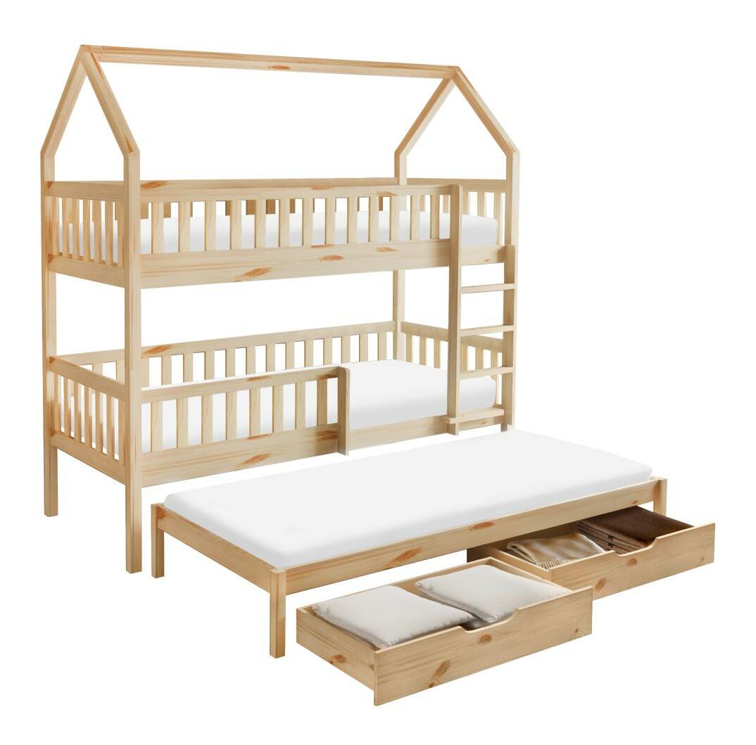 Dětská patrová postel s přistýlkou 90 cm Virtuoso (přírodní) (s roštem) (s úl. prostorem)