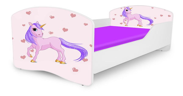 Dětská postel Lori se stane středobodem dětského pokoje. Je vyrobena z bezpečných a kvalitních materiálů, které jsou netoxické a bez zápachu. Základem je odolná HDF deska potažená laminem a navíc má i plastové ABS lišty na místech, která jsou náchylnější k poškození. Pestrobarevný obrázek je chráněn vrstvou průhledného lamina, takže se nepoškodí ani nepoškrábe. Vyvýšené bočnice zvyšují bezpečnost dětí, protože díky nim během spánku nespadnou z postele. Součástí balení je rošt a pěnová matrace s rozměry 140 x 70 cm. Za příplatek je možné objednat i úložný prostor pod postel.