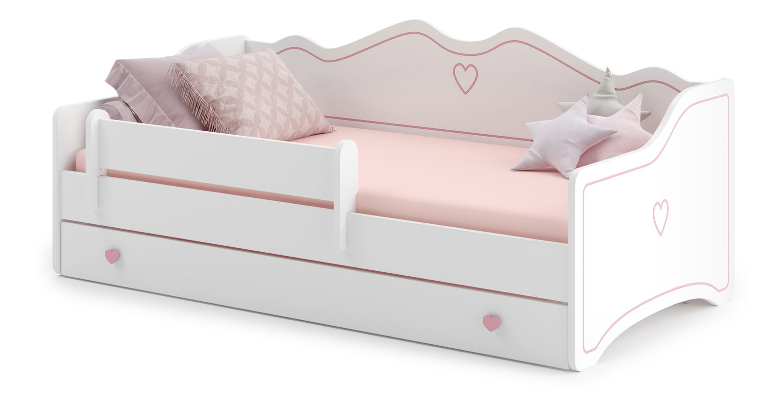 Dětská postel 160x80 cm Ester I (s roštem a matrací) (bílá + růžová + vzor)