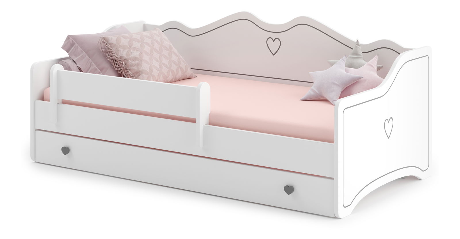 Prezentujeme vám dětskou postýlku ESTER I, která je neodolatelná svojí elegancí a stylem. Její zaoblené hrany dodávají postýlce graci a jemnost, vytvářejíc tak dokonalé prostředí pro vašeho malého pokladu. ESTER I je vyrobena z kvalitní laminované desky s PVC okraji, což zaručuje její pevnost a dlouhou životnost. Tento materiál je odolný vůči poškrábání a snadno se čistí, což je pro dětskou postýlku velmi důležité. Rošt v postýlce ESTER I je vyroben z pružných lamel v systému Flex, což zajišťuje optimální podporu a pohodlí během spánku. Vaše dítě si tak může užívat zdravého a příjemného spánku, který je pro jeho růst a vývoj velmi důležitý. K postýlce je také součástí pěnová matrace s odnímatelným povlakem na zip, což umožňuje snadné čištění a udržování čistoty matrace. Vaše dítě si tak může užívat čistého a hygienického spánku bez starostí. ESTER I disponuje také praktickým úložným prostorem v podobě vysouvací zásuvky na gumových kolečkách. Můžete v ní uschovat hračky, ložní prádlo nebo jiné věci, což přispívá k udržování pořádku v dětském pokoji. Velkorysá plocha na spaní postýlky ESTER I o rozměrech 160x80 cm poskytuje dostatek místa pro vaše dítě pro pohodlný spánek a relaxaci. Vaše dítě se tak bude cítit komfortně a bezpečně. Bariéra proti spadnutí je nedílnou součástí postýlky ESTER I. Je odnímatelná a pomáhá zajistit bezpečnost vašeho dítěte během spánku. Srdeční dřevěné rukojeti přidávají postýlce další šarm a styl.