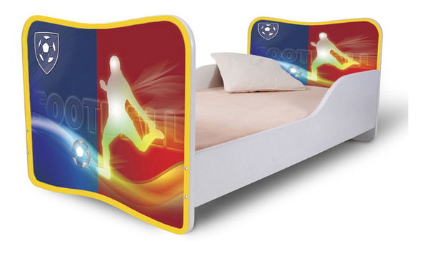 Dětská postel je vyrobena z bezpečných a kvalitních materiálů, které jsou netoxické a bez zápachu. Odolná HDF deska je opatřena plastovými ABS lištami na místech, která jsou náchylnější k poškození. Obrázek je chráněn vrstvou průhledného lamina, takže se nepoškodí ani nepoškrábe. V zájmu bezpečnosti dítěte jsou i vyvýšené bočnice, které zabrání spadnutí z postele během spánku. Postel s dětským motivem si vaše ratolesti zamilují a navíc i oživí každý dětský pokoj. Součástí balení je rošt a pěnová matrace s rozměry 160 x 80 cm.