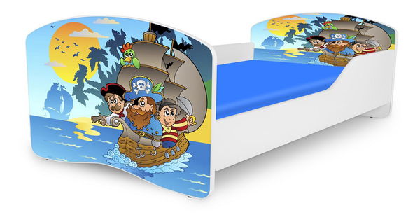 Dětská postel Lori se stane středobodem dětského pokoje. Je vyrobena z bezpečných a kvalitních materiálů, které jsou netoxické a bez zápachu. Základem je odolná HDF deska potažená laminem a navíc má i plastové ABS lišty na místech, která jsou náchylnější k poškození. Pestrobarevný obrázek je chráněn vrstvou průhledného lamina, takže se nepoškodí ani nepoškrábe. Vyvýšené bočnice zvyšují bezpečnost dětí, protože díky nim během spánku nespadnou z postele. Součástí balení je rošt a pěnová matrace s rozměry 160 x 80 cm. Za příplatek je možné objednat i úložný prostor pod postel.