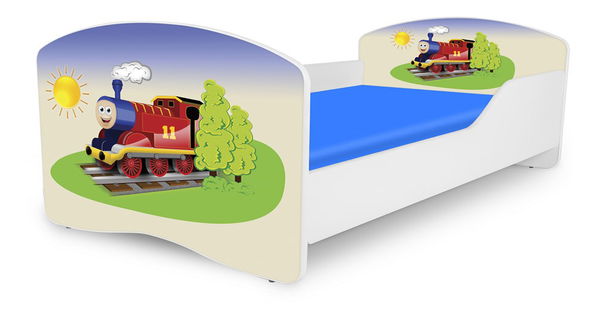 Dětská postel Lori se stane středobodem dětského pokoje. Je vyrobena z bezpečných a kvalitních materiálů, které jsou netoxické a bez zápachu. Základem je odolná HDF deska potažená laminem a navíc má i plastové ABS lišty na místech, která jsou náchylnější k poškození. Pestrobarevný obrázek je chráněn vrstvou průhledného lamina, takže se nepoškodí ani nepoškrábe. Vyvýšené bočnice zvyšují bezpečnost dětí, protože díky nim během spánku nespadnou z postele. Součástí balení je rošt a pěnová matrace s rozměry 160 x 80 cm. Za příplatek je možné objednat i úložný prostor pod postel.