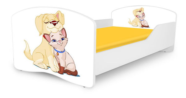 Dětská postel Lori se stane středobodem dětského pokoje. Je vyrobena z bezpečných a kvalitních materiálů, které jsou netoxické a bez zápachu. Základem je odolná HDF deska potažená laminem a navíc má i plastové ABS lišty na místech, která jsou náchylnější k poškození. Pestrobarevný obrázek je chráněn vrstvou průhledného lamina, takže se nepoškodí ani nepoškrábe. Vyvýšené bočnice zvyšují bezpečnost dětí, protože díky nim během spánku nespadnou z postele. Součástí balení je rošt a pěnová matrace s rozměry 160 x 80 cm. Za příplatek je možné objednat i úložný prostor pod postel.
