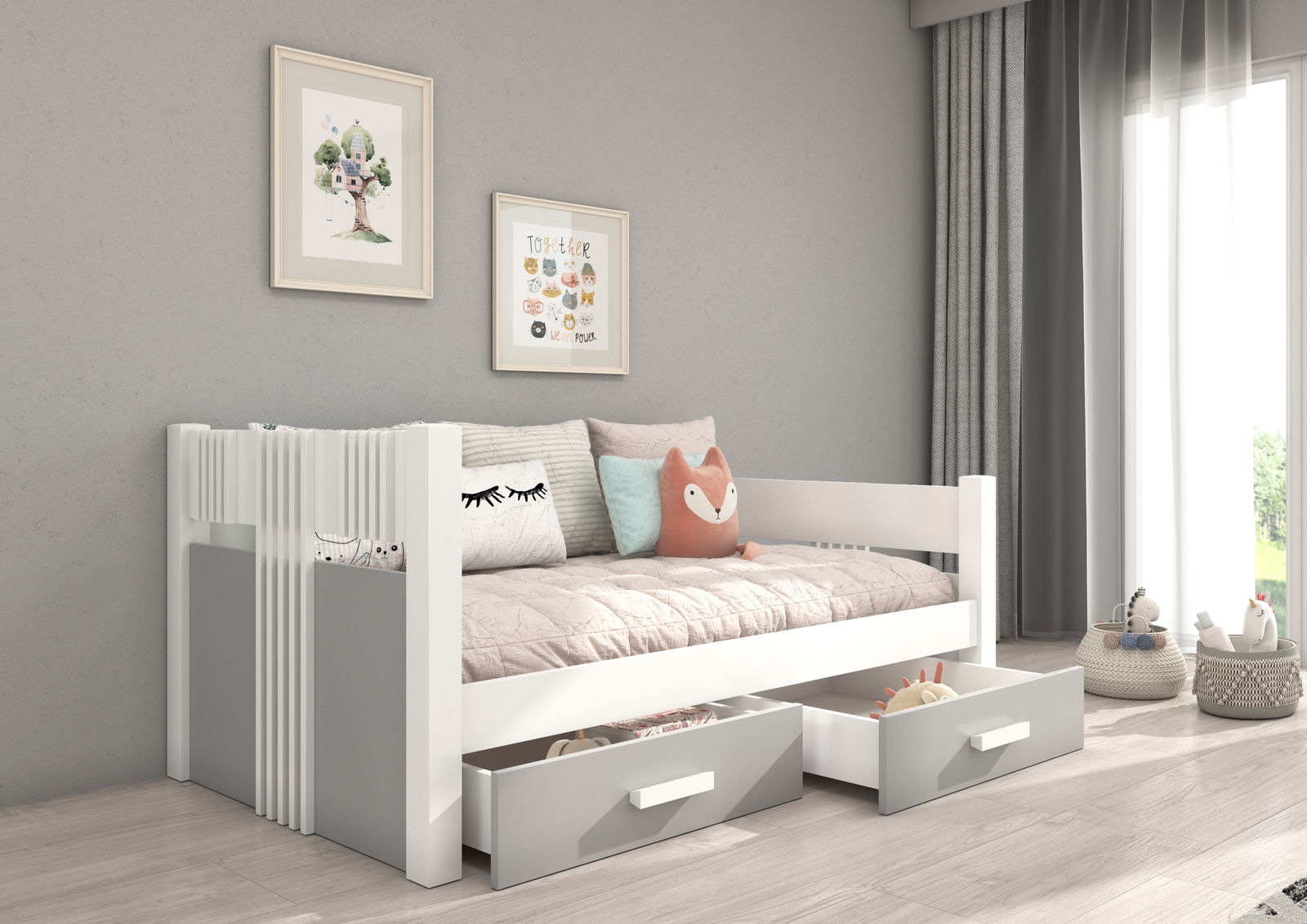 Představujeme postel Buppi - místo snů a nekonečné studny pro vaše malé poklady. Tato úžasná dětská postel je navržena s důrazem na bezpečnost, pohodlí a jedinečný design. Je vyrobena z laminované desky s hranami PVC, což zajišťuje jeho trvanlivost a trvanlivost. Při zatížení 110 kg je postel dostatečně silná a odolná.