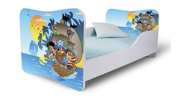 Dětská postel je vyrobena z bezpečných a kvalitních materiálů, které jsou netoxické a bez zápachu. Odolná HDF deska je opatřena plastovými ABS lištami na místech, která jsou náchylnější k poškození. Obrázek je chráněn vrstvou průhledného lamina, takže se nepoškodí ani nepoškrábe. V zájmu bezpečnosti dítěte jsou i vyvýšené bočnice, které zabrání spadnutí z postele během spánku. Postel s dětským motivem si vaše ratolesti zamilují a navíc i oživí každý dětský pokoj. Součástí balení je rošt a pěnová matrace s rozměry 180 x 80 cm.