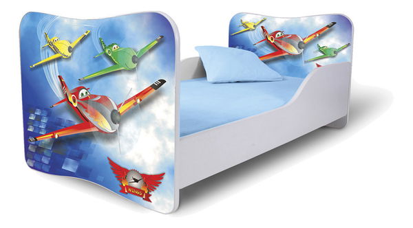 Dětská postel je vyrobena z bezpečných a kvalitních materiálů, které jsou netoxické a bez zápachu. Odolná HDF deska je opatřena plastovými ABS lištami na místech, která jsou náchylnější k poškození. Obrázek je chráněn vrstvou průhledného lamina, takže se nepoškodí ani nepoškrábe. V zájmu bezpečnosti dítěte jsou i vyvýšené bočnice, které zabrání spadnutí z postele během spánku. Postel s dětským motivem si vaše ratolesti zamilují a navíc i oživí každý dětský pokoj. Součástí balení je rošt a pěnová matrace s rozměry 180 x 80 cm.