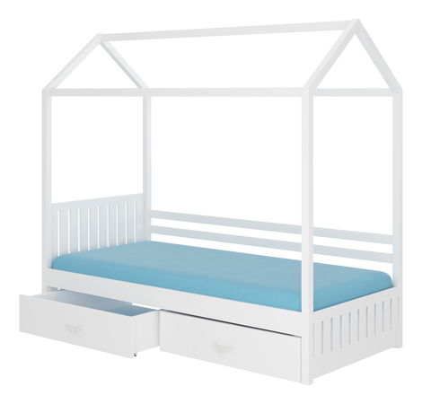 Vstupte do pohádkového světa s dětskou postelí ROSIE, která vytváří atmosféru domečku. Tato postýlka je vyrobena z kvalitního borovicového dřeva spojeného s laminovanou deskou, což jí dodává pevnost a šarm. S roštem z borovicového dřeva a pěnovou matrací s odnímatelným povlakem na zip nabízí vaší malé hvězdě dokonalý komfort a odpočinek. ROSIE také disponuje praktickým úložným prostorem v podobě dvou vysouvacích šuplíků, kde můžete uschovat hračky, oblečení nebo další věci. To pomůže udržet pokoj vašeho dítěte uspořádaný a čistý. S plochou na spaní 80x180 cm si vaše dítě užije dostatek prostoru pro bezstarostné sny a hravá dobrodružství. Přestože tato postýlka nemá bariéru proti spadnutí, její bezpečný design a nízká výška umožňují vašemu malému zlaťáku bezpečný a pohodlný spánek.