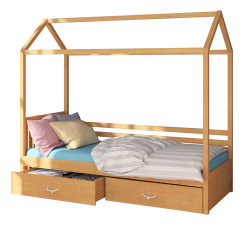 Vstupte do pohádkového světa s dětskou postelí ROSIE, která vytváří atmosféru domečku. Tato postýlka je vyrobena z kvalitního borovicového dřeva spojeného s laminovanou deskou, což jí dodává pevnost a šarm. S roštem z borovicového dřeva a pěnovou matrací s odnímatelným povlakem na zip nabízí vaší malé hvězdě dokonalý komfort a odpočinek. ROSIE také disponuje praktickým úložným prostorem v podobě dvou vysouvacích šuplíků, kde můžete uschovat hračky, oblečení nebo další věci. To pomůže udržet pokoj vašeho dítěte uspořádaný a čistý. S plochou na spaní 80x180 cm si vaše dítě užije dostatek prostoru pro bezstarostné sny a hravá dobrodružství. Přestože tato postýlka nemá bariéru proti spadnutí, její bezpečný design a nízká výška umožňují vašemu malému zlaťáku bezpečný a pohodlný spánek.