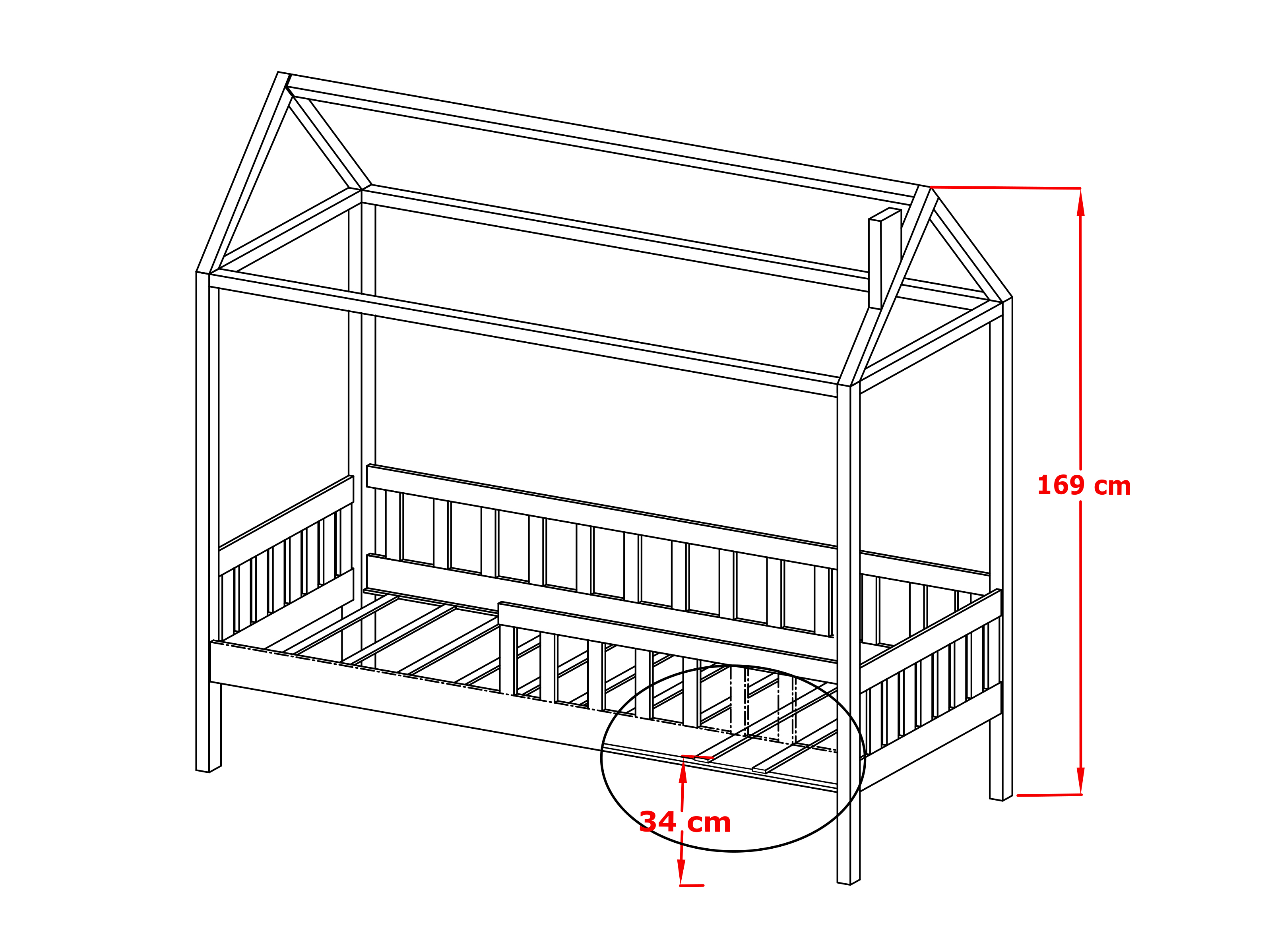 Dětská postel Donna je moderním a praktickým řešením do dětského pokoje. Je vyrobena výhradně z borovicového dřeva. Borovice nejenže neabsorbuje prach, ale je také mimořádně pevná a odolná. Postel má horní rám ve tvaru střechy. Může se na něj namontovat síť proti komárům nebo lze použít jako ozdoba. Bezpečnost dětí je zajištěna zábradlím připevněným na každé straně. Desky mají trojitý nátěr, čímž byla zajištěna přiměřená trvanlivost barvy. Použité materiály splňují všechny normy. Úložný prostor představují dvě zásuvky pod postelí. Představují samostatné prvky, v nichž lze uložit ložní prádlo, přikrývky nebo oblíbené hračky. Zásuvky jsou vyrobeny z dřevotřísky odolné proti poškození. Gumové kolečka nepoškrábou podlahu.