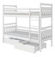 Tuto postel si jistě Vy i Vaše děti oblíbí už na první pohled. Má jednoduchý, ale funkční design a zároveň šetří prostor v dětském pokoji. Postel Aras je vyrobena výhradně z borovicového dřeva. Postel je vhodná pro poněkud starší děti. Postel má zaoblené hrany, a je tedy bezpečná pro děti. Horní lůžko má ochranné bariéry, které chrání děti před vypadnutím z postele. Postel disponuje také praktickým úložným prostorem v podobě dvou zásuvek. Zásuvky mají pryžová kolečka, která nepoškrábou podlahu.