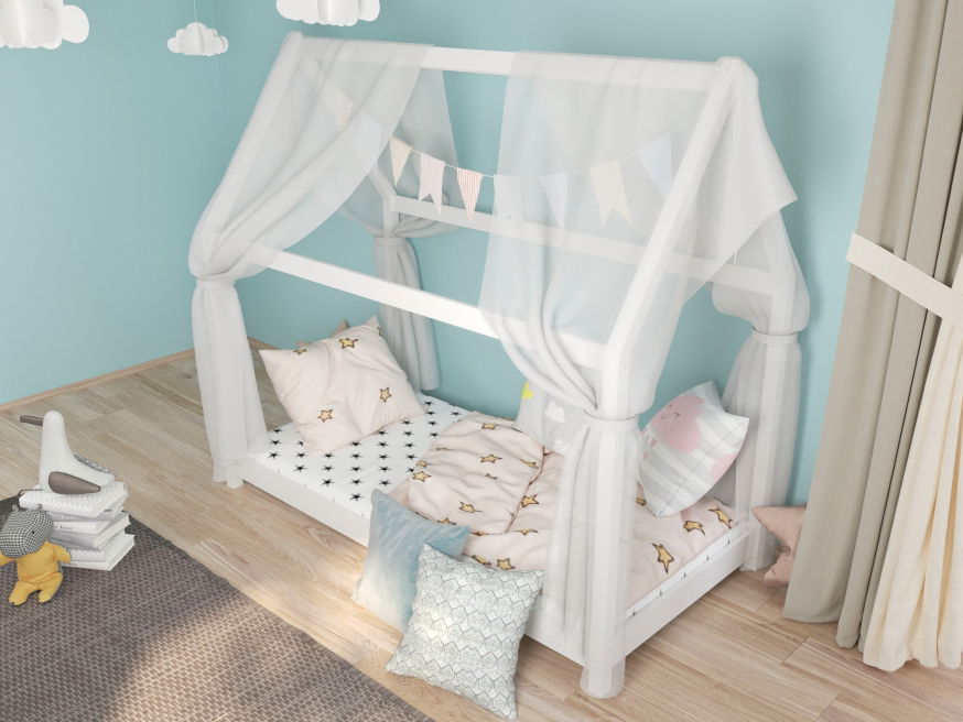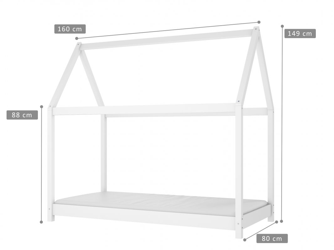 ZobrazitDětská postel 80 cm Coddo (bílá) (s rostem) s výskou 149 cm, sirkou 80 cm a hloubkou 160 cm. Dětská postel ve formě domku potěší každe dieta. Vyrobená z masivního borového dřeva a dodávaná s posíleným růstem, který přidrží i dospělé lidi. Můžete klidně sednout vedle vašeho dítěte, například při čtení pohádky na dobrou noc. Čistý a jemný design postele rozjasní každý dětský pokoj.