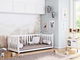 Dětská postel Connie je skvělou volbou pro Vaše ratolesti. Skládá se z rámu a vysokých bariér, které zajišťují bezpečnost dítěte. Postel Connie je vyrobena z borových desek, je ideální i pro děti, které mají problémy s alergiemi, neboť neabsorbují tolik prachu jako jiné dřeviny. Bariéry zabraňují vyklouznutí z postýlky a současně neomezují zorné pole. K nabarvení nábytku se používá trojitý nátěr. Použité barvy jsou ekologické a splňují všechny požadované normy.