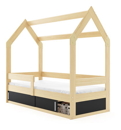 Dětská postel 80 cm Dormo (borovice + černá) (s roštem, matrací a úl. prostorem)