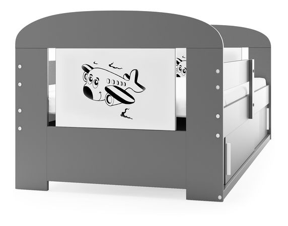 Dětská postel 80 cm Fimmo (grafit + letadlo) (s roštem, matrací a úl. prostorem)