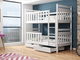 Patrová postel Mao je postel vhodná pro 2 děti, které zvládnou lezení po žebříku. Horní i dolní lůžko je zajištěno ochrannými bariérami, takže děti nevypadnou z postele během spánku. Vzdálenost mezi lůžky je 75 cm. Výška od země po horní lůžko je 120 cm, výška od země po spodní lůžko je 35 cm. Postel Mao je stabilní a pevná postel vyrobená výlučně z borovice. Barvy a laky použité ve výrobním procesu splňují všechny požadované normy. Součástí je také úložný prostor na kolečkách. Pryžová kolečka nepoškrábou podlahu.