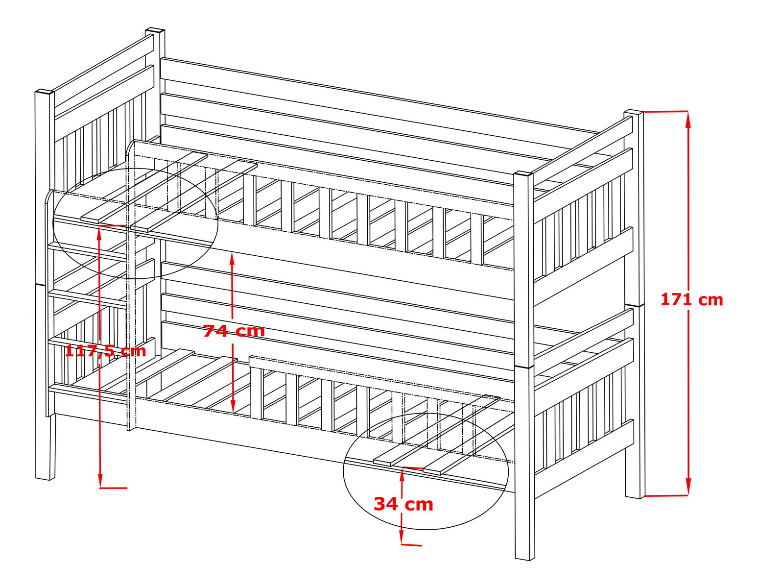 Postele jsou vyrobeny v souladu s normou EN-747-1:2012+A1:2015, díky čemuž máte jistotu, že výrobek byl vyroben s nejvyššími bezpečnostními standardy stanovenými při výrobě dětských postelí.