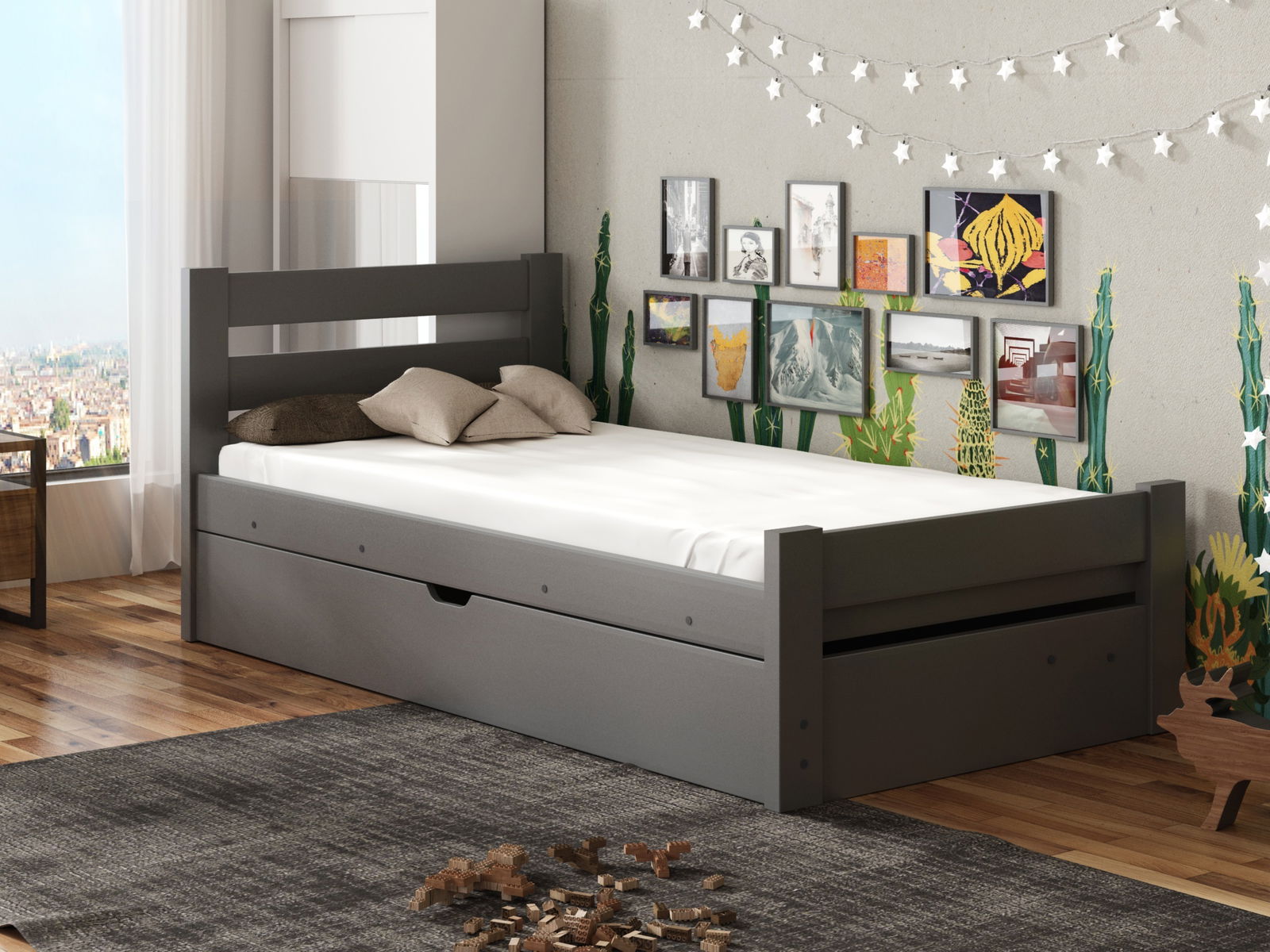 Dětská postel 80 cm Nia (s roštem a úl. prostorem) (grafit)
