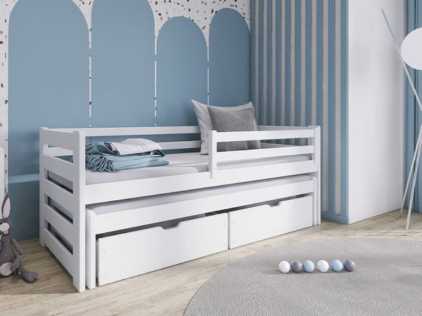 Hledáte dokonalou postel do dětského pokoje? Vyberte si dětskou postel se zábradlím Palkana 80! Poskytuje univerzální design, který se bude hodit do různých stylových interiérů. Nabízí také dvě prostorné zásuvky, které můžete využít na další polštář, deku, ale také na hračky nebo sportovní potřeby.