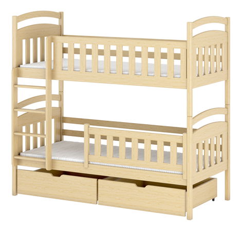 Patrová postel Penny je vysoká postel vhodná do dětského pokoje. Obzvláště je vhodná pro sourozence. Patrové postele šetří spoustu místa, proto se doporučují do menších místností. Postel Penny je vybavena vysokými bariérami. Na horním lůžku mají příčky výšku 25 cm, na spodním lůžku jsou příčky vysoké 34 cm. Bariéry chrání děti před vypadnutím z postele. Na horní lůžko vede žebřík. Postel je vyrobena z borového dřeva a je pevná a stabilní. Praktickým doplňkem je také úložný prostor v podobě dvou zásuvek ve spodní části postele. Pryžová kolečka zásuvek nepoškrábou podlahu.