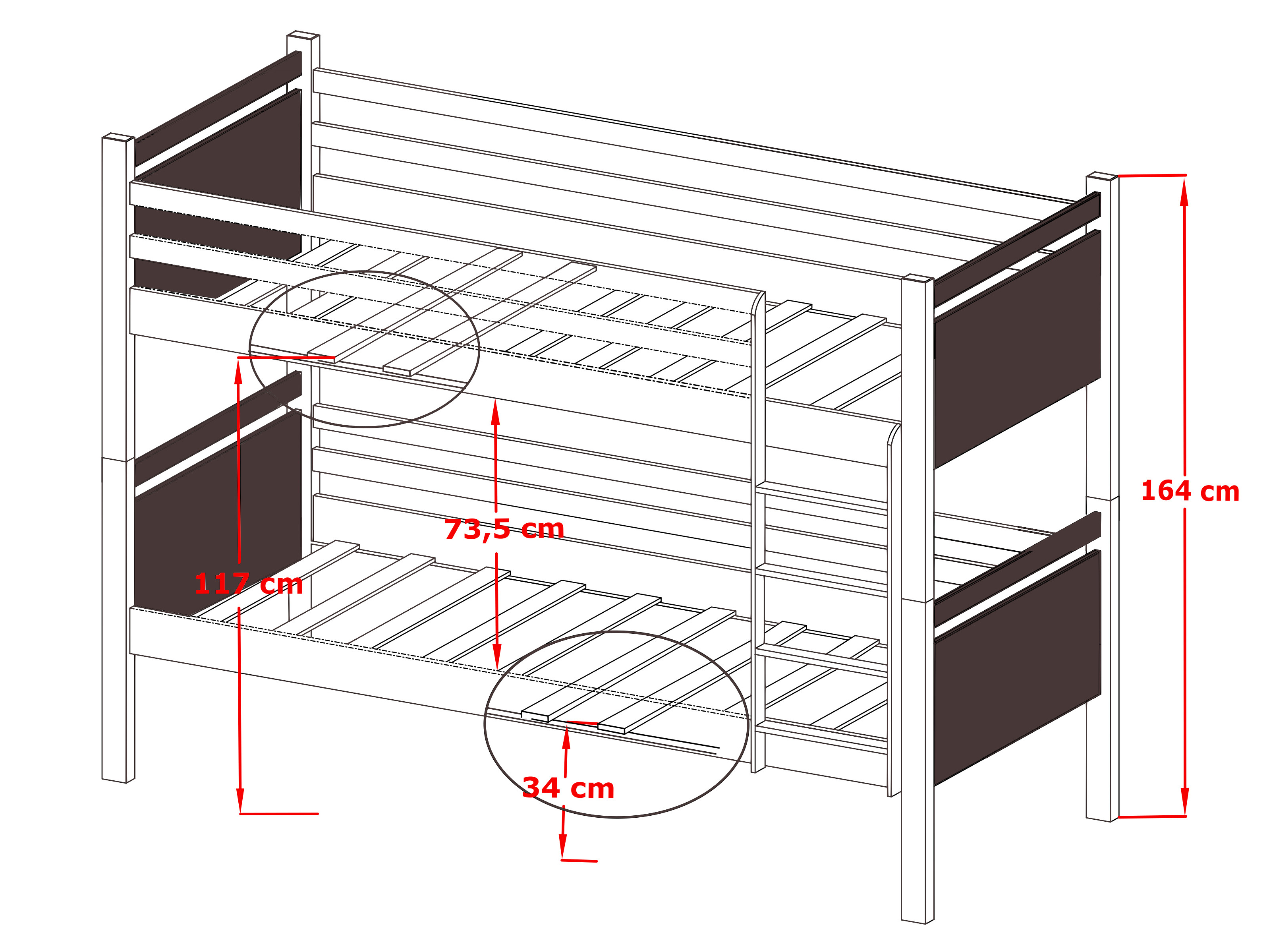 Stylová patrová postel Talia je skvělým doplňkem dětského pokoje. Zároveň šetří prostor, takže i v malých pokojích najde své využití. Vysoké patrové postele se doporučují pro trochu starší děti, které nemají problém vylézt po žebříku. Horní a dolní lůžko je zajištěno bariérami, které brání vypadnutí během spánku. Postel je vyrobena z dřevěných desek, které mají opracované hrany tak, aby nepředstavovaly nebezpečí pro děti. Používané barvy a laky jsou ekologicky bezpečné a splňují potřebné normy. Postel má i úložný prostor na kolečkách. Gumové kolečka nepoškrábou podlahu.