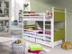 Stylová patrová postel Talia je skvělým doplňkem dětského pokoje. Zároveň šetří prostor, takže i v malých pokojích najde své využití. Vysoké patrové postele se doporučují pro trochu starší děti, které nemají problém vylézt po žebříku. Horní a dolní lůžko je zajištěno bariérami, které brání vypadnutí během spánku. Postel je vyrobena z dřevěných desek, které mají opracované hrany tak, aby nepředstavovaly nebezpečí pro děti. Používané barvy a laky jsou ekologicky bezpečné a splňují potřebné normy. Postel má i úložný prostor na kolečkách. Gumové kolečka nepoškrábou podlahu.
