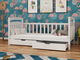 Postel Tobie je atraktivním nábytkem do dětského pokoje. Je zvláště vhodný pro děti, které již nepotřebují bariéry na všech stranách. Postel se skládá z rámu a vysokých bariér podél krátké a jedné dlouhé strany. Delší zábradlí lze připevnit na kteroukoli ze dvou stran v závislosti na poloze nábytku vzhledem ke stěně. Postel je vyrobena z borovicového dřeva, chráněna ekologickými, bezpečnými laky. Postel disponuje také úložným prostorem v podobě zásuvek pod postelí. Pryžová kolečka zásuvek nepoškrábou podlahu.