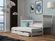 Rozkládací postel Toya je nižší postel určená zejména pro děti, například pro dva sourozence. Postel je zvláště vhodná pro malé děti. Horní lůžko má kolem rámu bariéry. Bariéry chrání dítě před vypadnutím z postele. Bariéry lze kdykoli odmontovat. Spodní lůžko je umístěno pod horním a lze jej jednoduše vytáhnout a připravit na spaní. Postel nezabírá moc místa a hodí se do menších dětských pokojů. K dispozici je také praktický úložný prostor, kam si můžete uložit ložní prádlo nebo hračky.