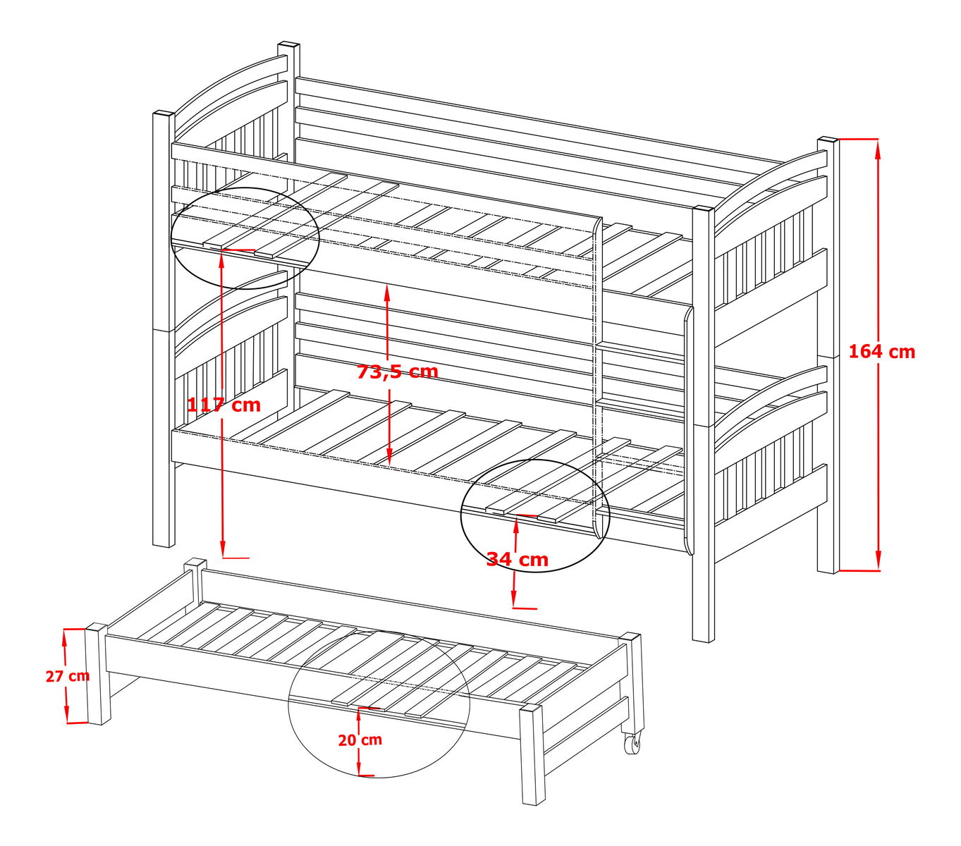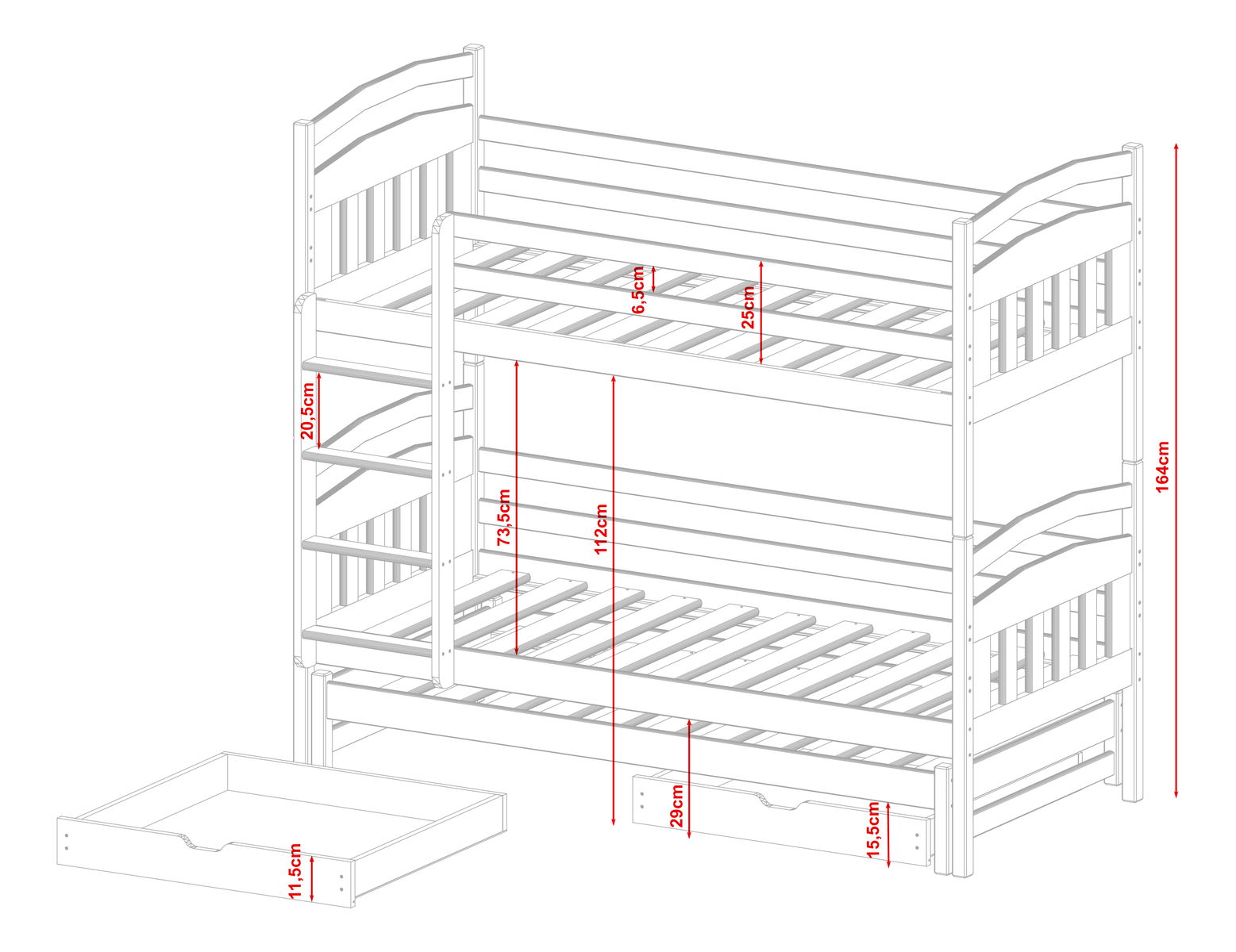 Postele jsou vyrobeny v souladu s normou EN-747-1:2012+A1:2015, díky čemuž máte jistotu, že výrobek byl vyroben s nejvyššími bezpečnostními standardy stanovenými při výrobě dětských postelí.
